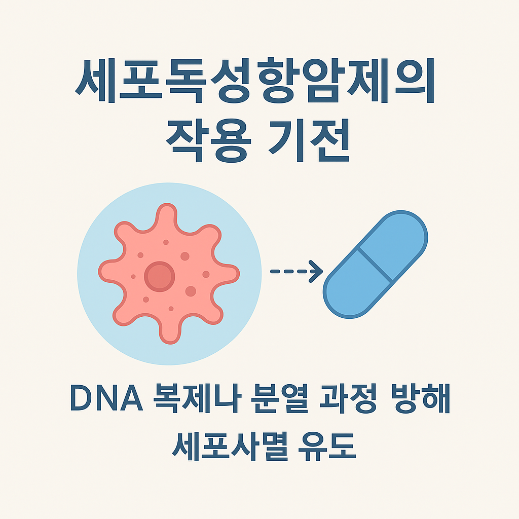 | 🔹 세포독성 항암제란? | 빠르게 분열하는 암세포의 DNA 복제와 분열을 방해해 사멸시키는 항암제 |