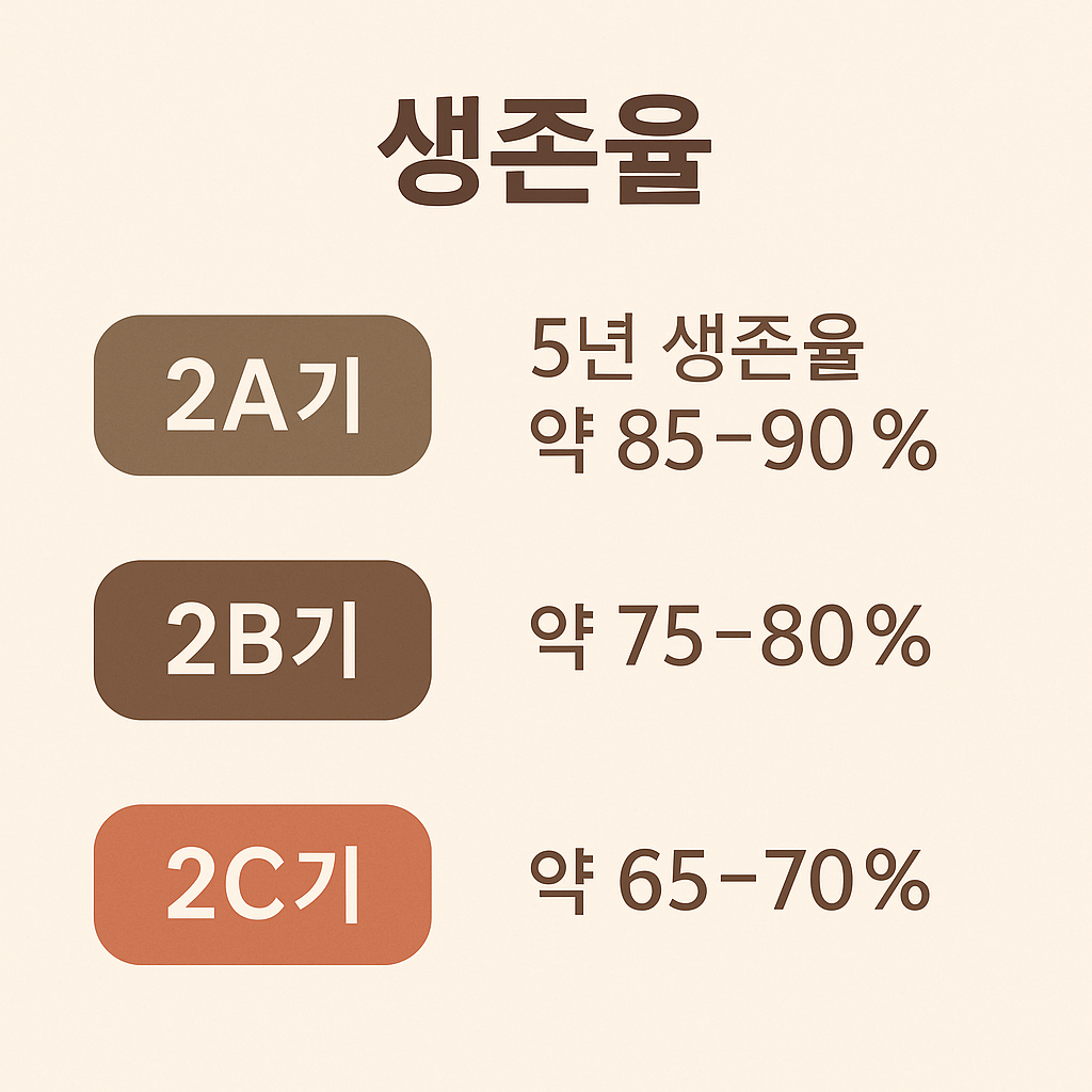 - 2A기: 5년 생존율 약 85~90%