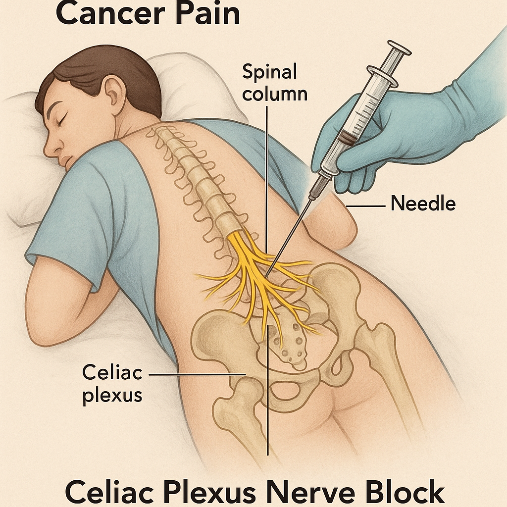 - 대상: 췌장암, 위암, 간암, 담도암 등 상복부 내장의 암으로 인해 발생하는 극심한 복통 환자에게 효과적입니다. 복강신경총은 상복부 장기들의 통증 신호를 모아 척수로 전달하는 중요한 신경 집합체입니다.