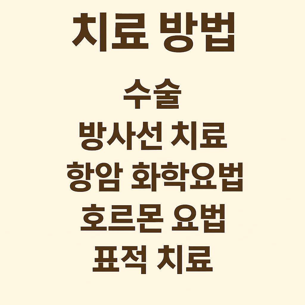 - 방사선치료: 유방보존술 후 필수이며, 전절제술 후에도 고위험군은 대상이 된다