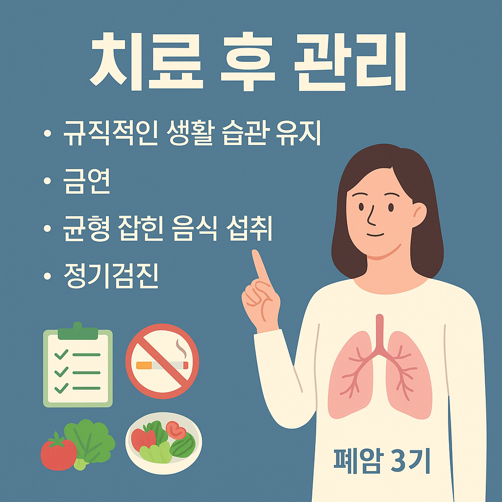 - 재발 징후 주의: 기침, 체중감소, 흉통이 재발되면 즉시 병원 방문